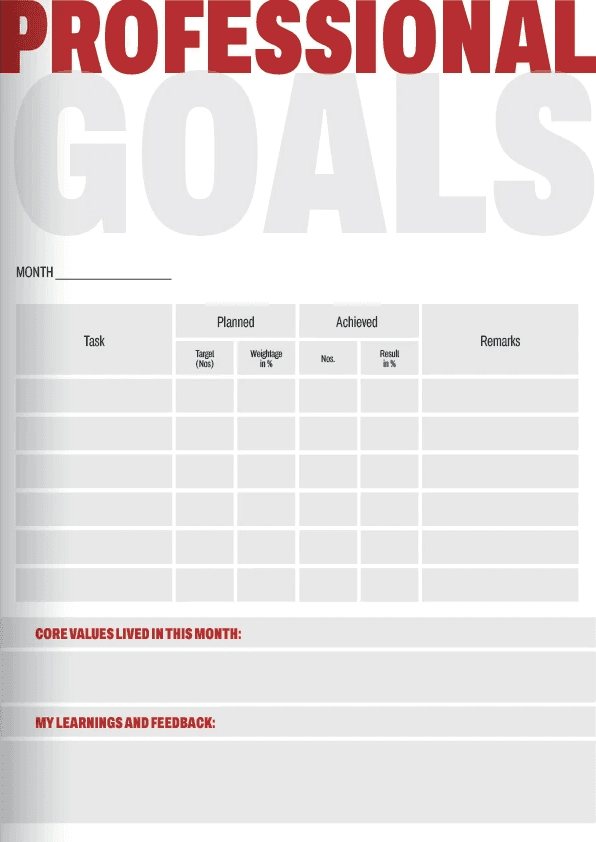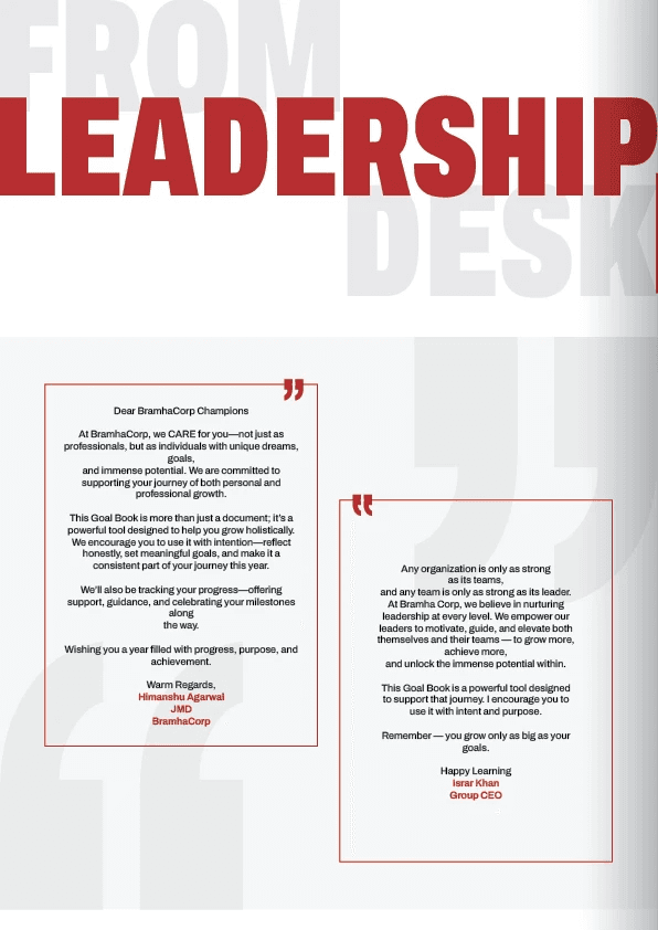 The Bramhacorp Goal Book is an annual publication designed for employees to set and track their goals for the year. It encourages individuals to define not only their professional targets within the company but also their personal growth and life aspirations.